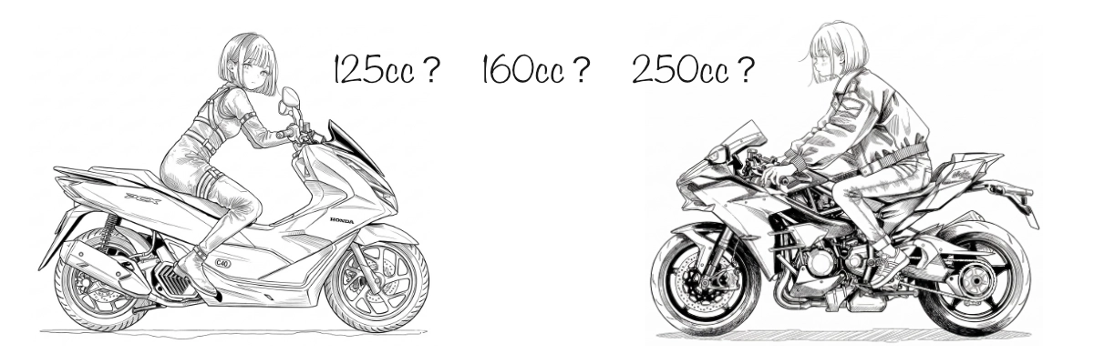50cc・125cc・250ccあたりで迷いやすいポイントを中心に、「どこからどう違うのか」を確認していきましょう。